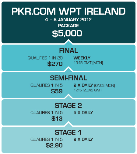 This January sees another edition of the WPT, this time on the shores of Ireland and sponsored by one of the fastest growing online poker sites, PKR.com. Satellites have started and are running round the clock, for as little as $3, for you to win a $5,000 WPT experience. Every package on offer includes a €2,500 tournament seat, five nights accommodation at the luxury Citywest hotel, a special PKR goody bag and $250 towards expenses.