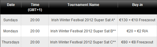 Titan Poker will stage 3 different super satellite promotions awarding €1,800 prize packages to the 2012 Irish Winter Festival.